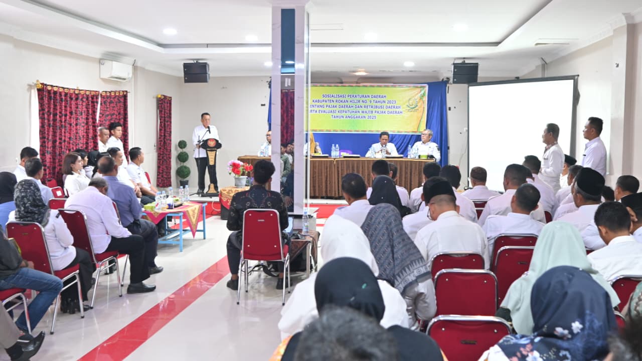 Diskominfotiks Rohil -- Bupati Rokan Hilir H. Bistaman secara resmi membuka kegiatan sosialisasi Peraturan Daerah (Perda) Nomor 9 Tahun 2023 tentang pajak daerah dan retribusi daerah serta evaluasi kepatuhan wajib pajak daerah tahun anggaran 2025, Rabu (15/10/2025) di aula salah satu hotel di Jalan Lintas Sumatera, Ujung Tanjung, Rohil, Provinsi Riau.