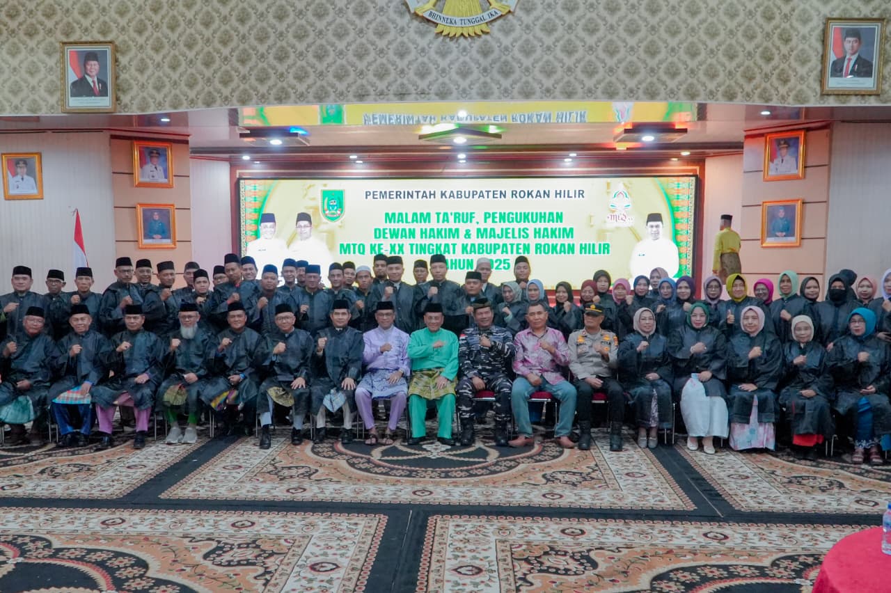 Diskominfotiks Rohil -- Pemerintah Kabupaten Rokan Hilir menggelar malam Ta'ruf dan pengukuhan dewan hakim dan majelis hakim MTQ Ke- XX Kabupaten Rokan Hilir tahun 2025 pada Jumat malam (12/12/2025) di Gedung Misran Rais Jalan Utama Bagansiapiapi Rohil Provinsi Riau.