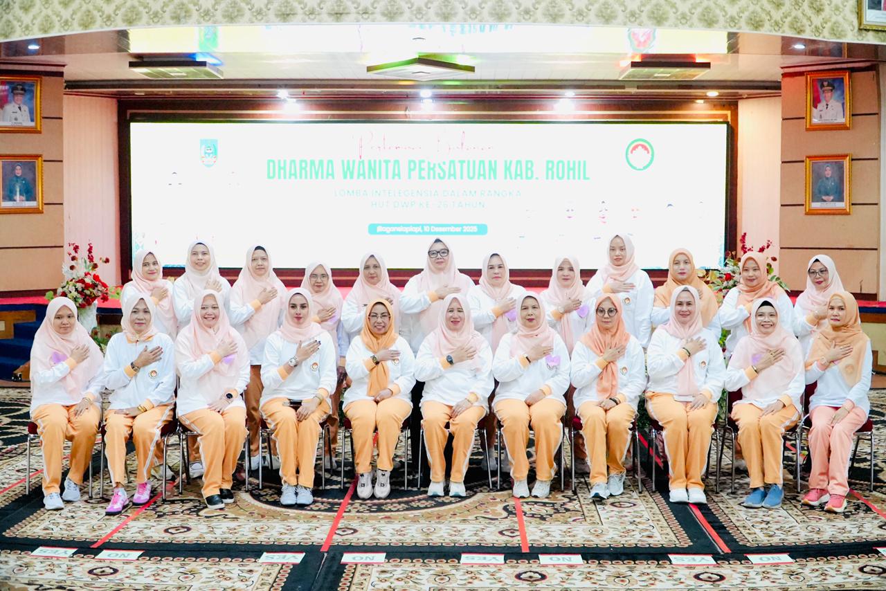Diskominfotiks Rohil - Dharma Wanita Persatuan (DWP) Kabupaten Rokan Hilir (Rohil) menggelar rangkaian kegiatan menarik dalam rangka memperingati Hari Ulang Tahun (HUT) DWP yang ke-26. Acara yang dipusatkan di Gedung Misran Rais, Jalan Gedung Nasional, Bagansiapiapi, pada Rabu (10/12/2025) ini, diisi dengan arisan bulanan sekaligus lomba intelegensia yang berlangsung meriah dan penuh keakraban.
