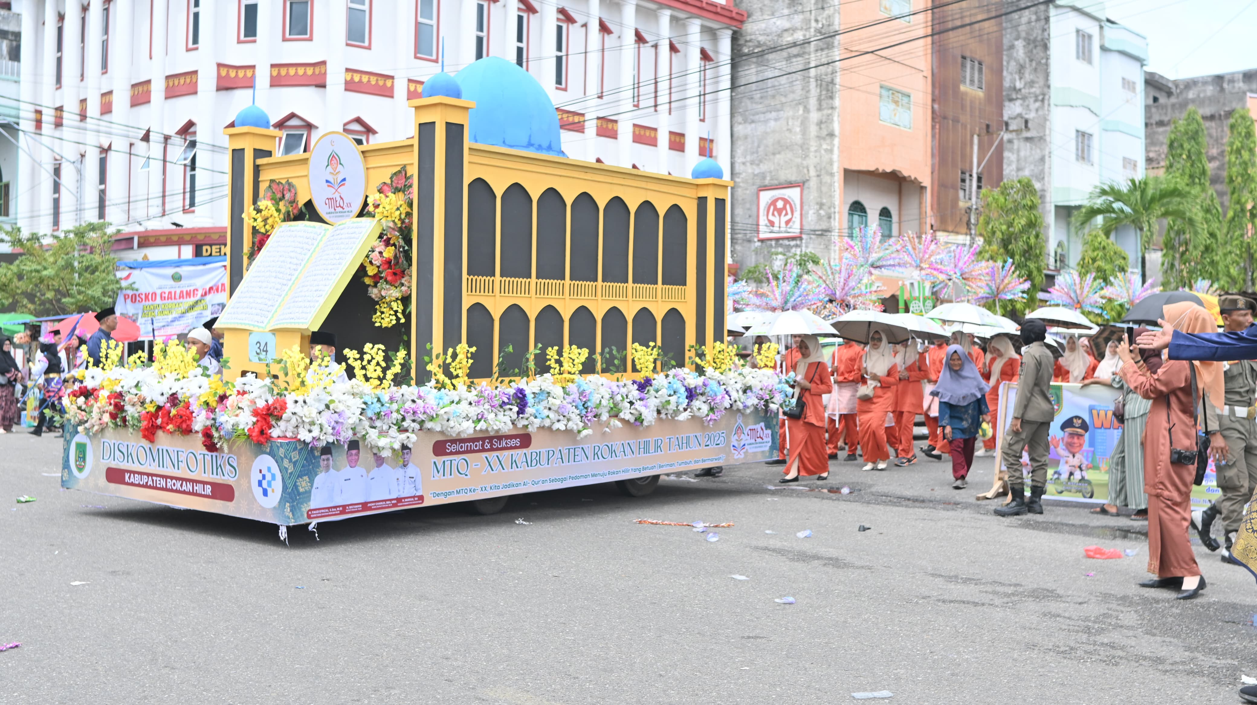 Pada kesempatan tersebut, Diskominfotiks Rohil menampilkan miniatur masjid dengan arsitektur khas Timur Tengah sebagai ikon utama barisan. ditambah lagi barisan dari pakaian adat yang memberikan bingkisan kepada bupati Rokan Hilir H Bistamam.