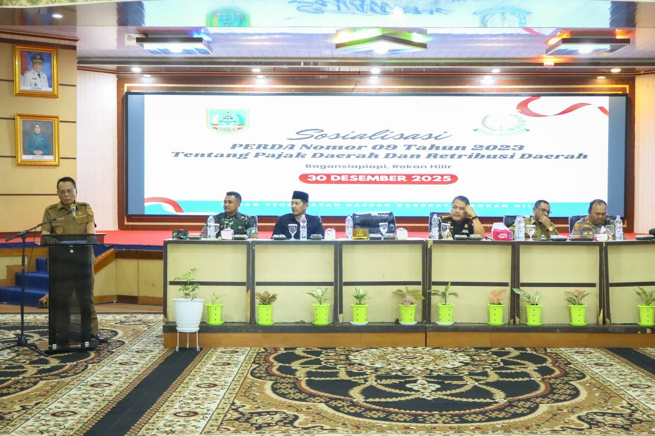 Diskominfotiks Rohil - Pemerintah Kabupaten Rokan Hilir (Rohil) resmi menggelar sosialisasi Peraturan Daerah (Perda) Nomor 09 Tahun 2023 tentang Pajak Daerah dan Retribusi Daerah (PDRD). Acara yang berlangsung di Gedung Misran Rais, Selasa (30/12/2025), ini juga disejalankan dengan peluncuran aplikasi inovatif "Kesatria Bijak" (Kelompok Sadar dan Terampil Aplikasi Bimbingan Pajak).