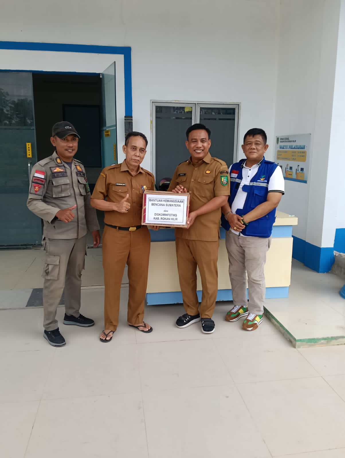 Bantuan kemanusiaan itu diterima langsung oleh Kepala Dinas Sosial Rohil, Andi Rahman, di Kantor Dinsos sebagai bagian dari upaya konsolidasi bantuan terpusat yang dikoordinasikan di tingkat kabupaten. Penyerahan ini menegaskan komitmen Pemerintah Kabupaten Rokan Hilir dalam memperkuat solidaritas sosial untuk mendukung masyarakat yang terdampak bencana alam di sejumlah wilayah di Sumatera.