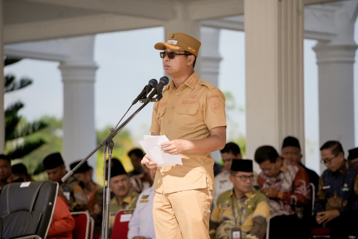 Diskominfotiks Rohil – Pemerintah Kabupaten Rokan Hilir (Rohil) menggelar upacara peringatan Hari Desa Nasional Tahun 2026 yang dipusatkan di Taman Budaya Batu 6, Bagansiapiapi, Kamis (15/1/2026). Acara ini menjadi momentum penting dalam memperkuat komitmen pemerintah daerah untuk membangun desa yang mandiri, inovatif, dan berdaya saing.