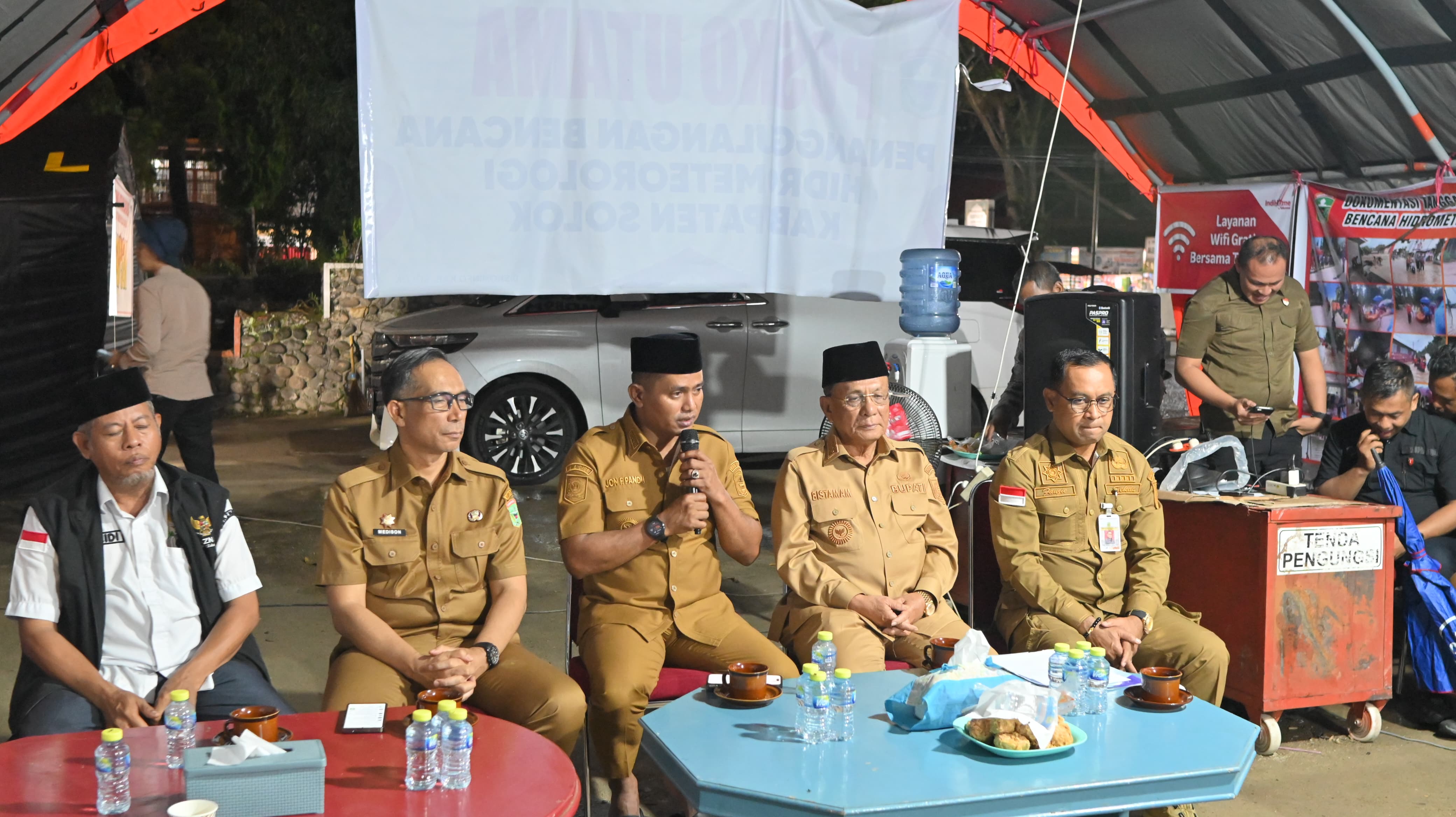 Kehadiran Bupati Rohil, H. Bistamam, beserta rombongan disambut langsung oleh Jon Firman Pandu Posko bencana alam hidrometeorologi di Kabupaten Solok, Sumatera Barat, pada Selasa (16/12/2025).