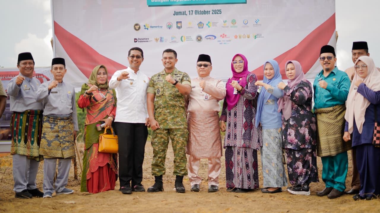 Wakil Bupati Rokan Hilir ( Rohil ) Jhony Charles BBA. MBA bersama Dandim 0321 Rohil Letkol Inf Diki Apriyadi SHub.Int dan Kepala Dinas Koperasi dan UMKM Rohil Hj. Sri Haslina SH melakukan peletakan batu pertama pembangunan fisik Koperasi Merah Putih.