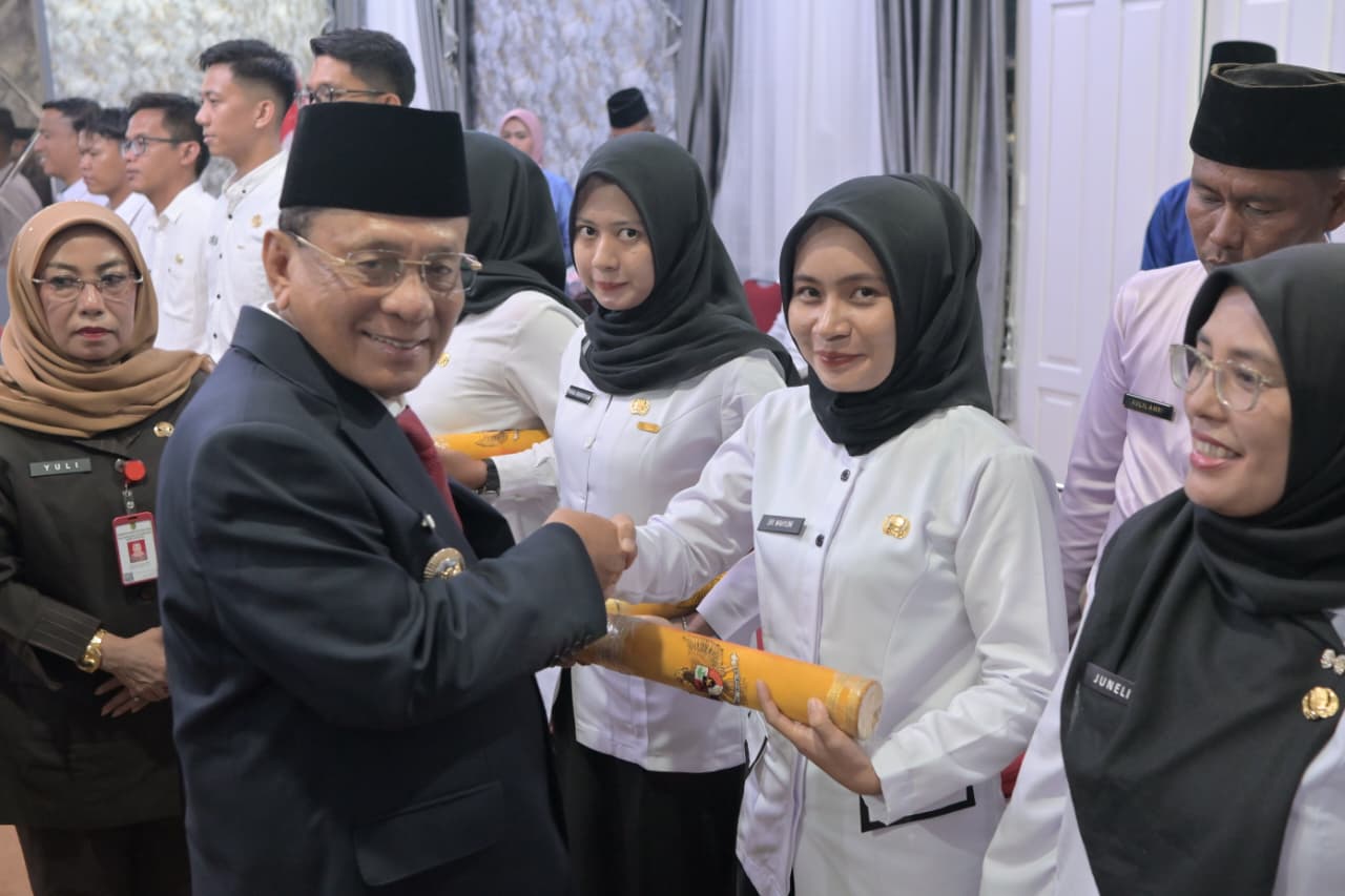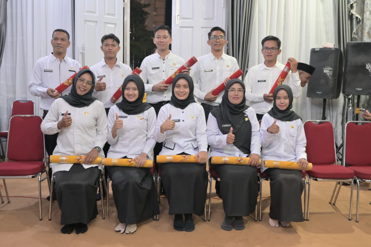 Diskominfotik Rohil - Bupati Rokan Hilir H. Bistamam menyerahkan Surat Keputusan (SK) Pegawai Pemerintah dengan Perjanjian Kerja (PPPK) kepada 1.046 tenaga honorer yang lulus tahap II tahun 2024, dimana pada prosesi di Mess Pemda Bagansiapiapi, Selasa (30/9/2025) malam, sebanyak 10 orang menerima SK secara simbolis yang dihadiri jajaran pejabat struktural, perwakilan instansi terkait.