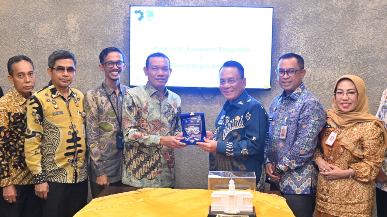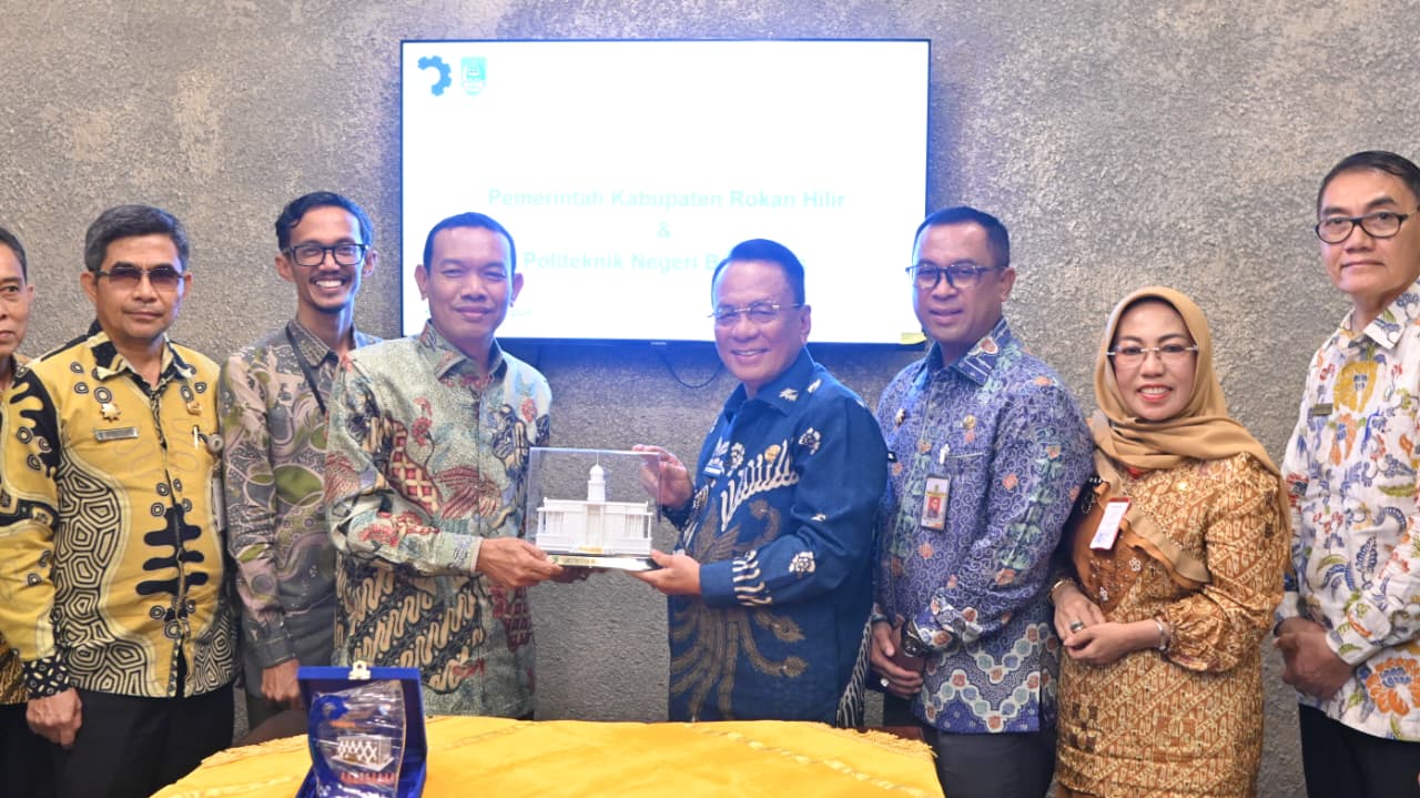 Acara kemudian dilanjutkan dengan penandatanganan nota kesepahaman (MoU) antara Politeknik Negeri Bengkalis dan Pemerintah Kabupaten Rokan Hilir, serta penyerahan cenderamata sebagai simbol komitmen kolaborasi jangka panjang.