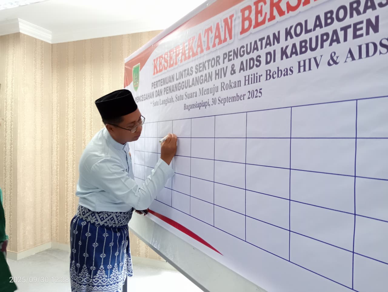 Sebagai tindak lanjut konkret, pertemuan lintas sektor ini ditutup dengan penandatanganan kesepakatan bersama antara Wakil Bupati, Ketua KPA, pimpinan OPD, camat, kepala puskesmas, serta perwakilan Lapas Kelas II Bagansiapiapi. Komitmen tersebut menjadi tonggak penting dalam memperkuat langkah kolektif untuk menekan kasus HIV/AIDS di Kabupaten Rokan Hilir secara terukur, sistematis, dan berkelanjutan.