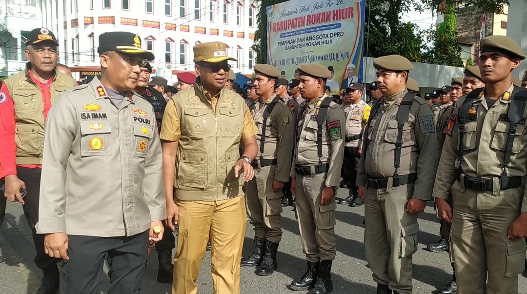 Turut hadir dalam apel tersebut, Kapolres Rokan Hilir AKBP Isa Imam Syahroni, S.I.K., M.H, Pasi Intel Kodim 0321 Kapten Infanteri Mulyadi Jasmar yang mewakili Dandim, serta Danyon B Pelopor Brimob Menggala AKBP Lilik Pamungkas, bersama jajaran pejabat dan unsur Forkopimda lainnya.